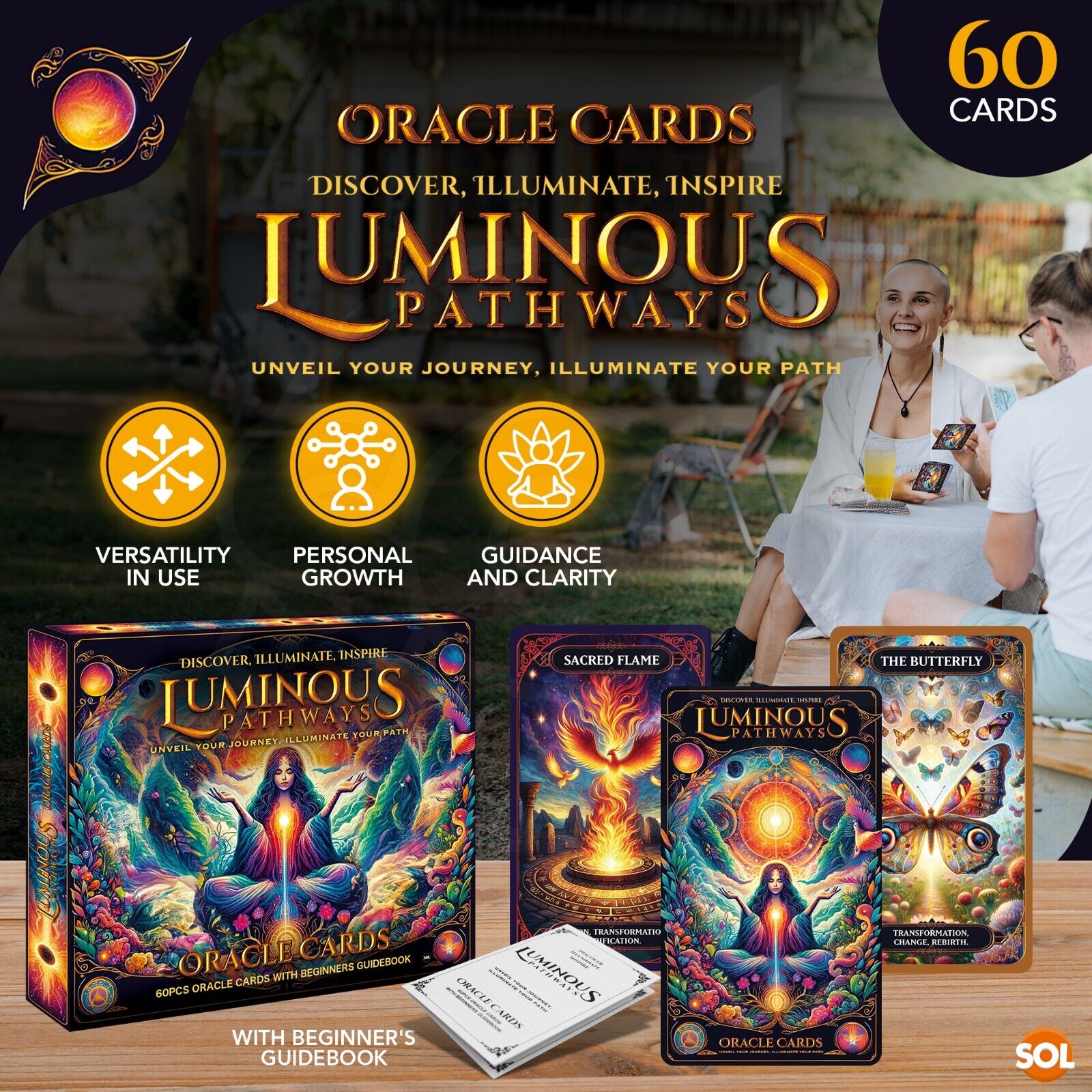 Embark on a transformative journey with the Luminous Pathways Oracle Cards with Guidebook, a complete 60-card oracle deck designed for spiritual growth, manifestation, and divination. Each card is beautifully illustrated with vibrant artwork, offering inspiration, clarity, and guidance whenever you need it most. This oracle card set comes with a comprehensive beginner-friendly guidebook, providing clear interpretations and practical advice for each card. Whether you’re new to oracle readings or an experienced reader, the guide makes it simple to understand messages, perform readings, and deepen your spiritual connection. Perfect for daily inspiration, meditation, manifestation rituals, or personal reflection, these oracle cards empower you to make informed decisions and align with your higher path. The stunning illustrations create a visually enriching experience, making each reading both meaningful and uplifting. Suitable for beginners, spiritual practitioners, and tarot enthusiasts alike, this oracle manifestation deck is a versatile tool for enhancing your practice. Use it to seek guidance, strengthen intuition, and manifest the life you envision.