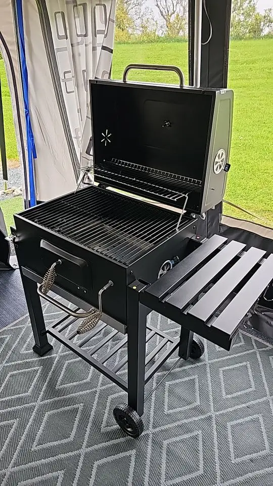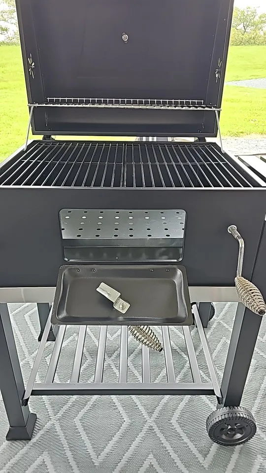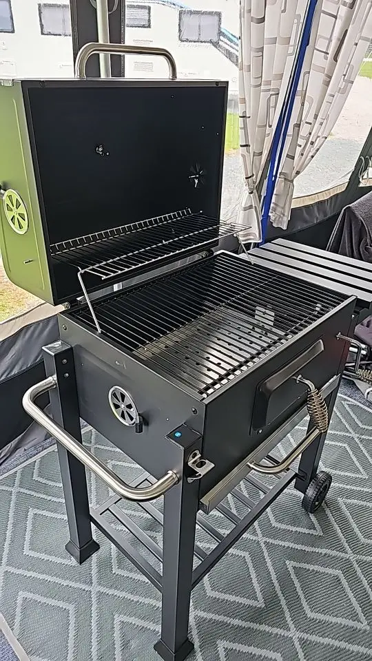 The side of the grill is equipped with stainless steel handles, and the bottom is also equipped with two large wheels, which is very convenient to move.