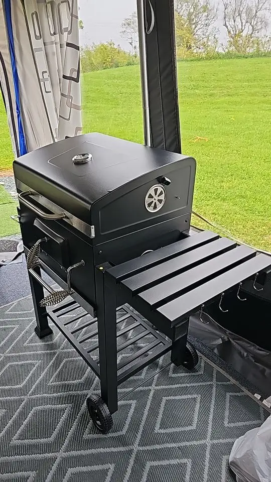 The side racks and hooks of the BBQ grill can be used to place the materials needed for barbecue, allowing you to enjoy outdoor cooking with peace of mind. At the same time, the bottom of the grill is equipped with a shelf to provide extra space for placing things.