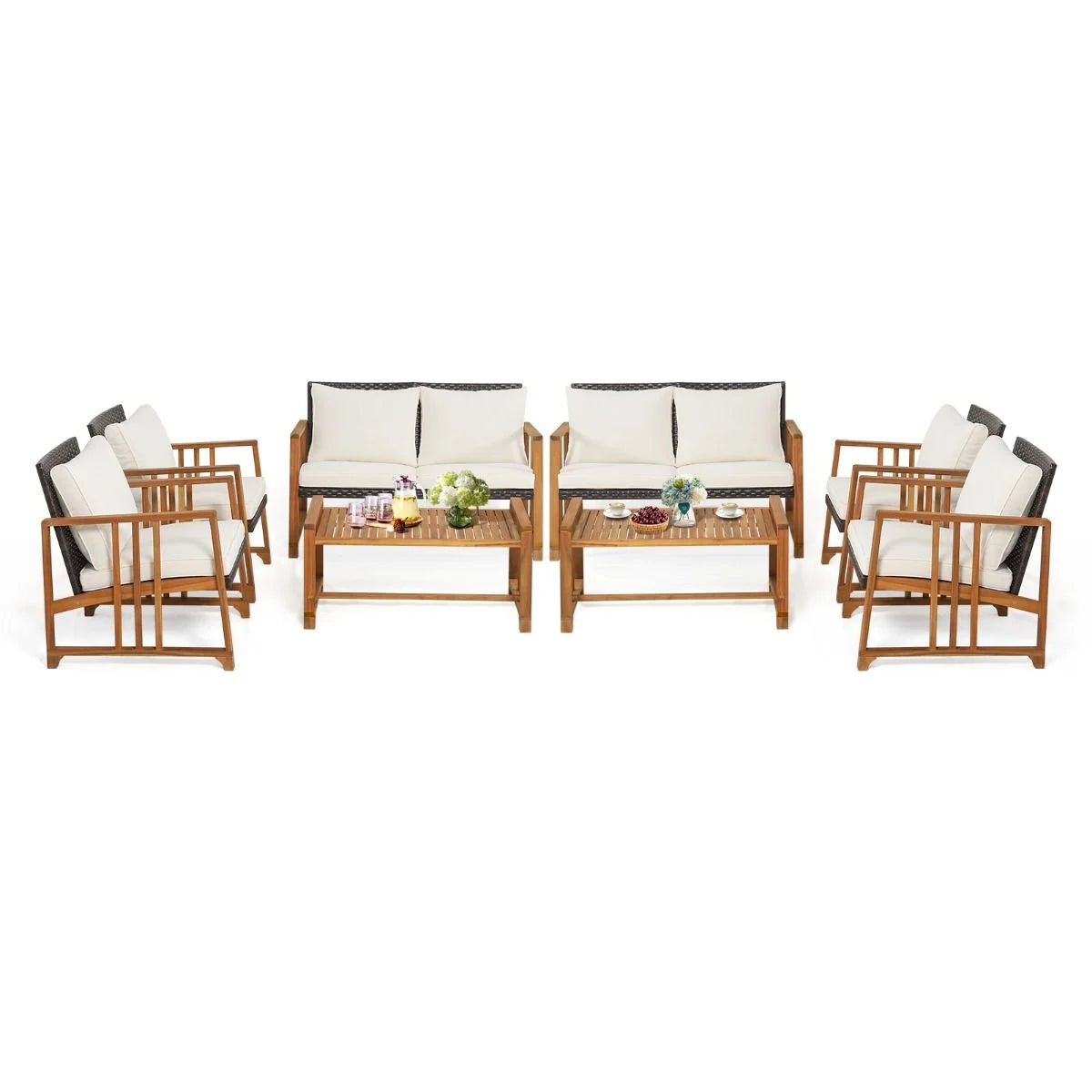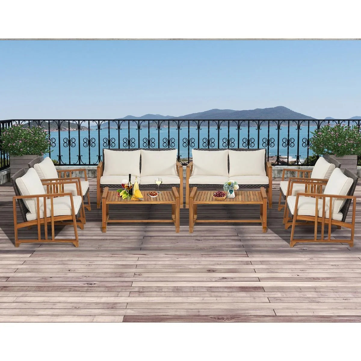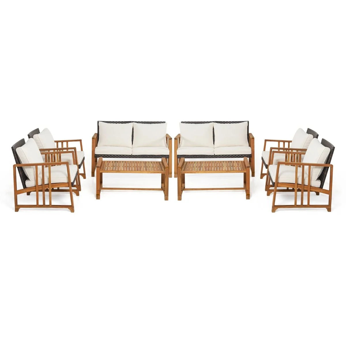 Outdoor Mix Brown Rattan Set with Acacia Wood Frame and Back Cushions