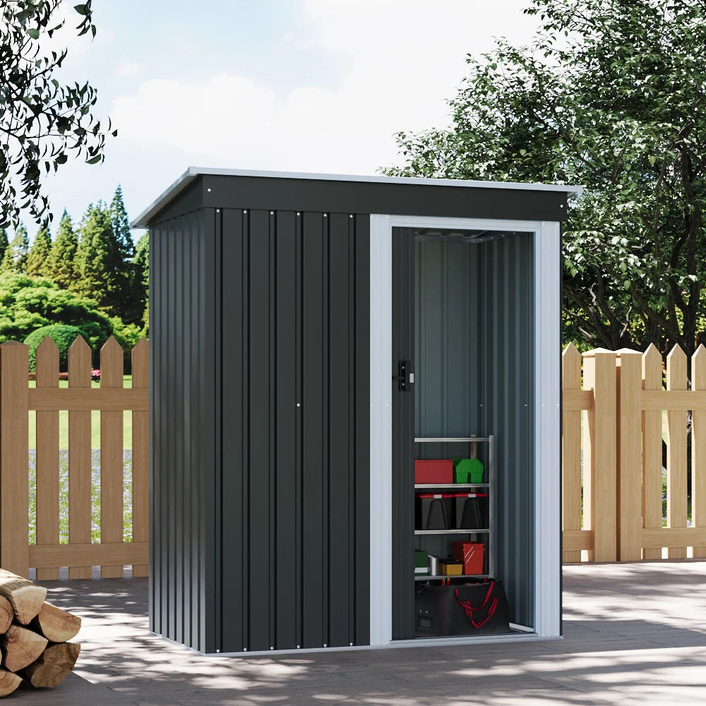 Imagine a garden where everything has its place, free from clutter and mess. This stylish metal shed offers the good solution for storing everything from gardening tools and bikes to lawnmowers and more. Enjoy enhanced accessibility with a wider door opening, making it easy to load and unload your belongings. The sliding doors make it a breeze to get in and out. Built to withstand the elements, this shed is weatherproof, rust-resistant, UV-resistant, and features ample ventilation. Its sturdy construction ensures long-lasting use, while the stylish design complements any outdoor setting.
