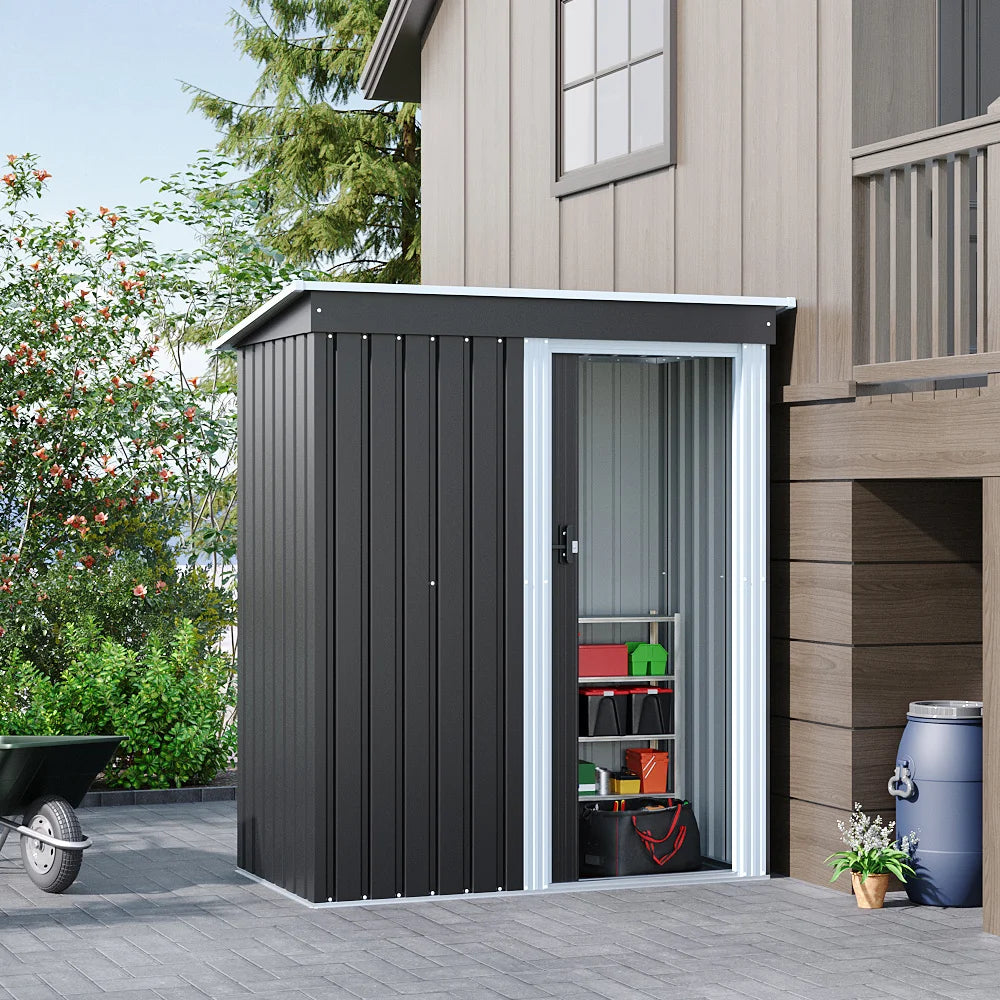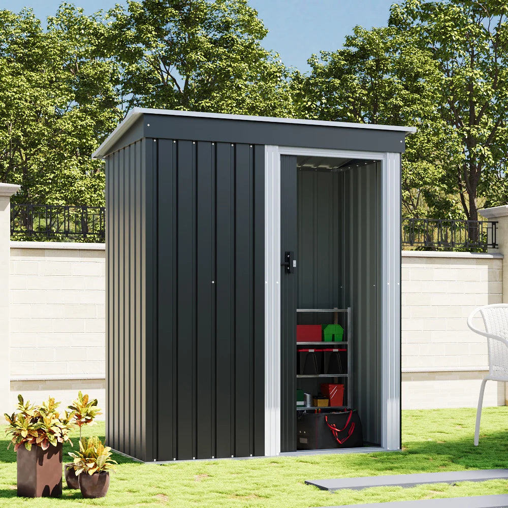 Outdoor Water-Resistant Galvanized Steel Storage Shed with Sloping Roof,Lockable Door for Lawn Patio Backyard