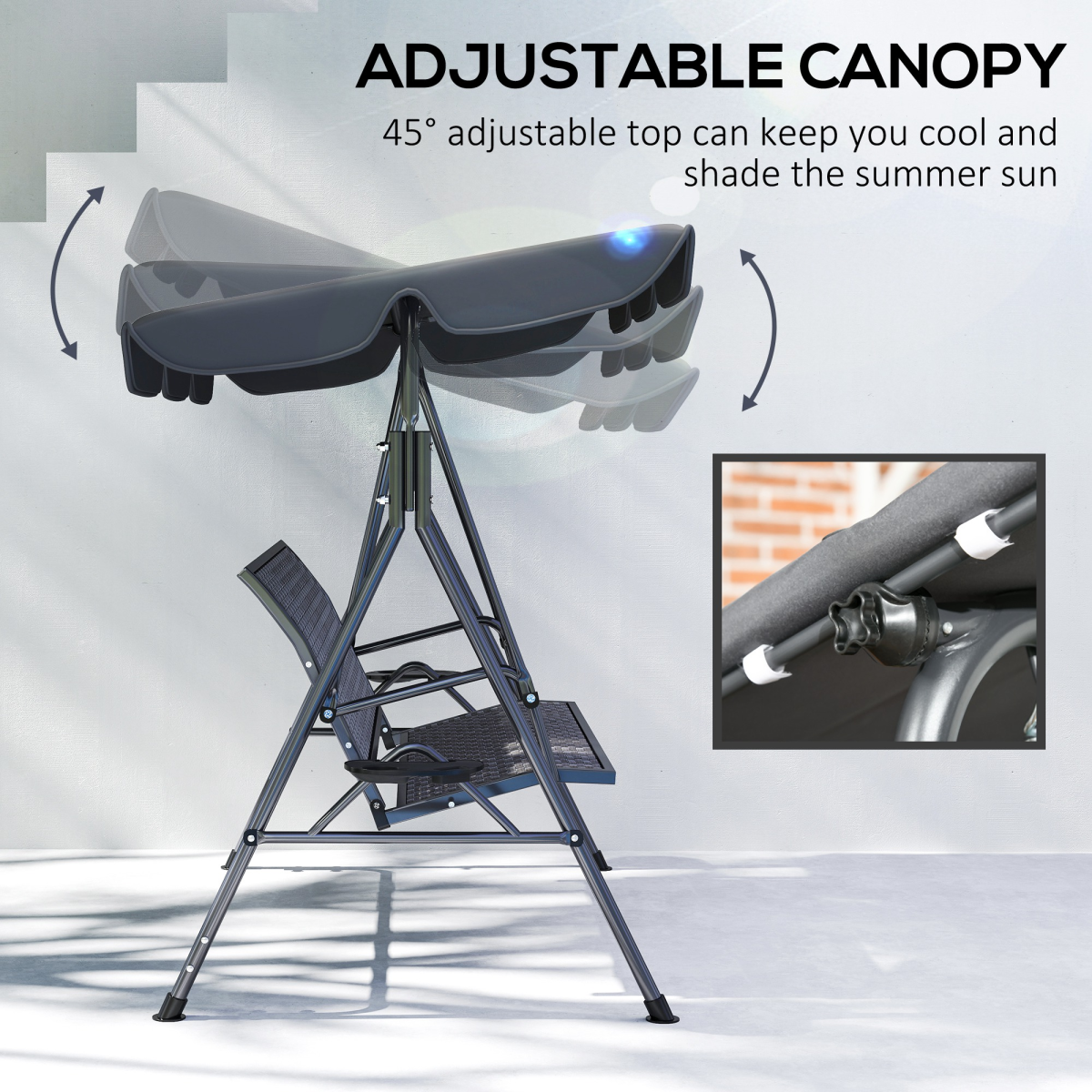 The adjustable 45° angle canopy provides effective protection from the sun's glare and light rain, ensuring you can enjoy your swing regardless of the weather. Crafted with a robust steel frame, this bench promises a sturdy structure that you can trust, while non-slip foot pads offer added stability and protection for your outdoor surfaces.