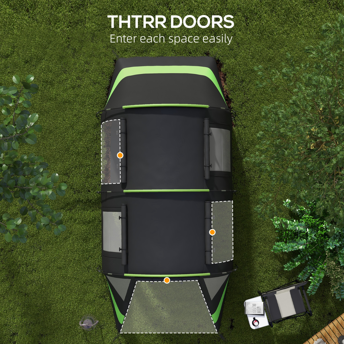 Featuring easy-access doors to both spaces, this tunnel tent is designed for convenience and practicality. When it's time to pack up, you'll appreciate the included 22 ground stakes, 8 guy ropes, and a handy carry bag for effortless transportation.