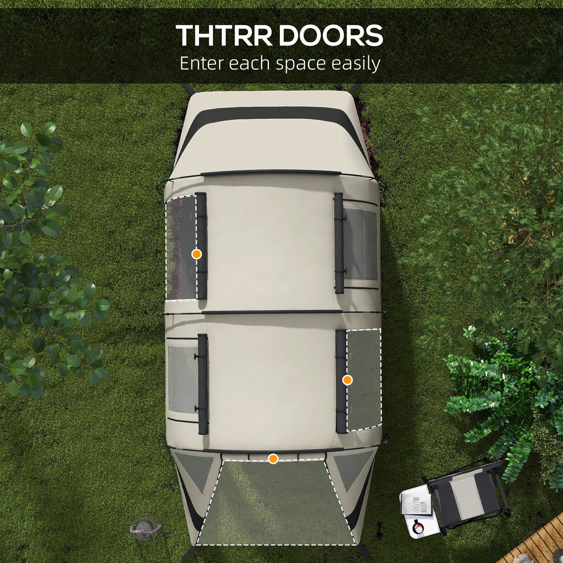 The Outsunny tent boasts a remarkable waterproof rating of up to 3,000mm, keeping you dry and cozy even during unexpected downpours. With convenient doors for easy access to each section, your camping experience is made hassle-free. Complete with 22 ground stakes, 8 guy ropes for added stability, and a practical carry bag, this tent is your perfect companion for unforgettable outdoor adventures!