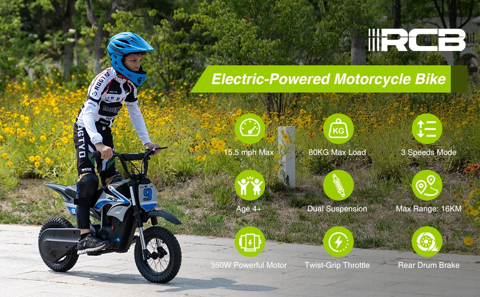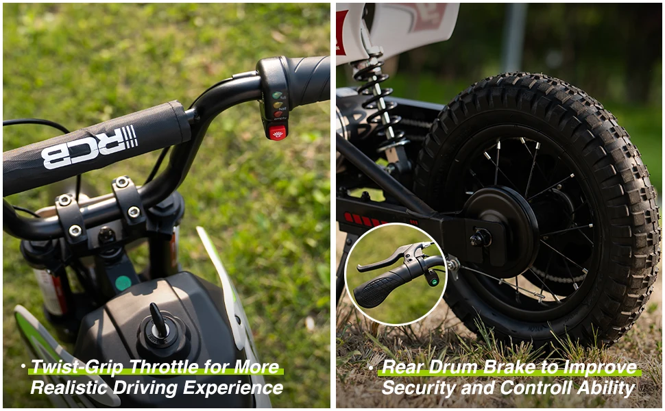 The Most Special Gift for Kids - Give your kids RCB electric dirt bike to ignite their passion for exploration and adventure. This motorcycle will help them develop bravery, curiosity, and excellent control and riding abilities.