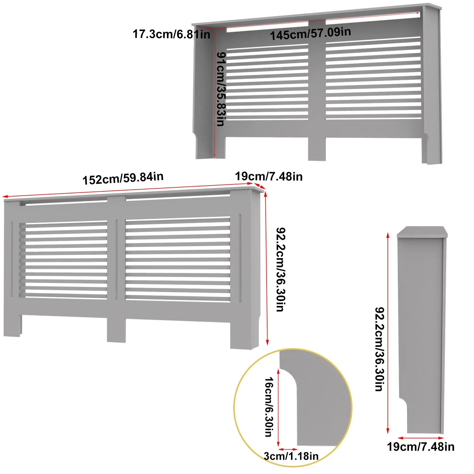 Extra Tall 92CM Radiator Cover MDF Cabinet Grill Shelf Fence Panel Barrier