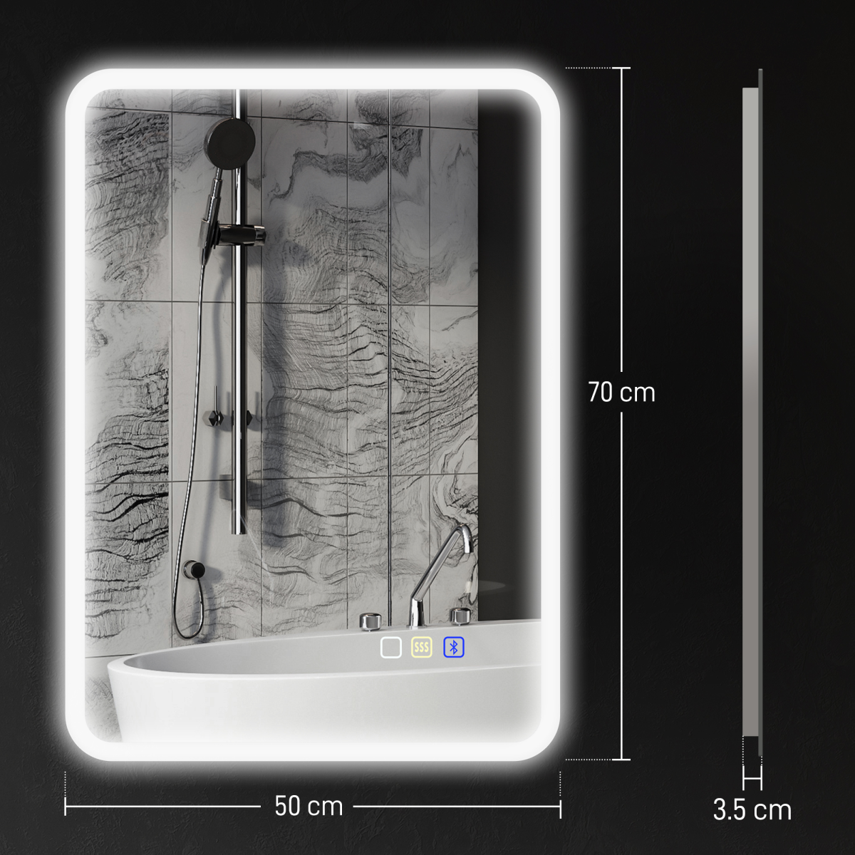 Elevate your daily routine with the innovative smart LED mirror. This beautifully designed bathroom mirror features adjustable brightness and three colour temperatures, along with convenient Bluetooth connectivity. Experience the perfect setting for your morning rituals, whether you're getting ready for the day or unwinding in the evening.