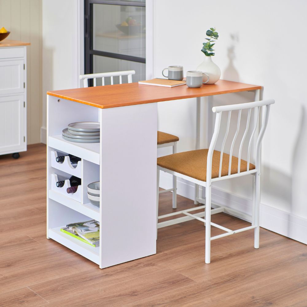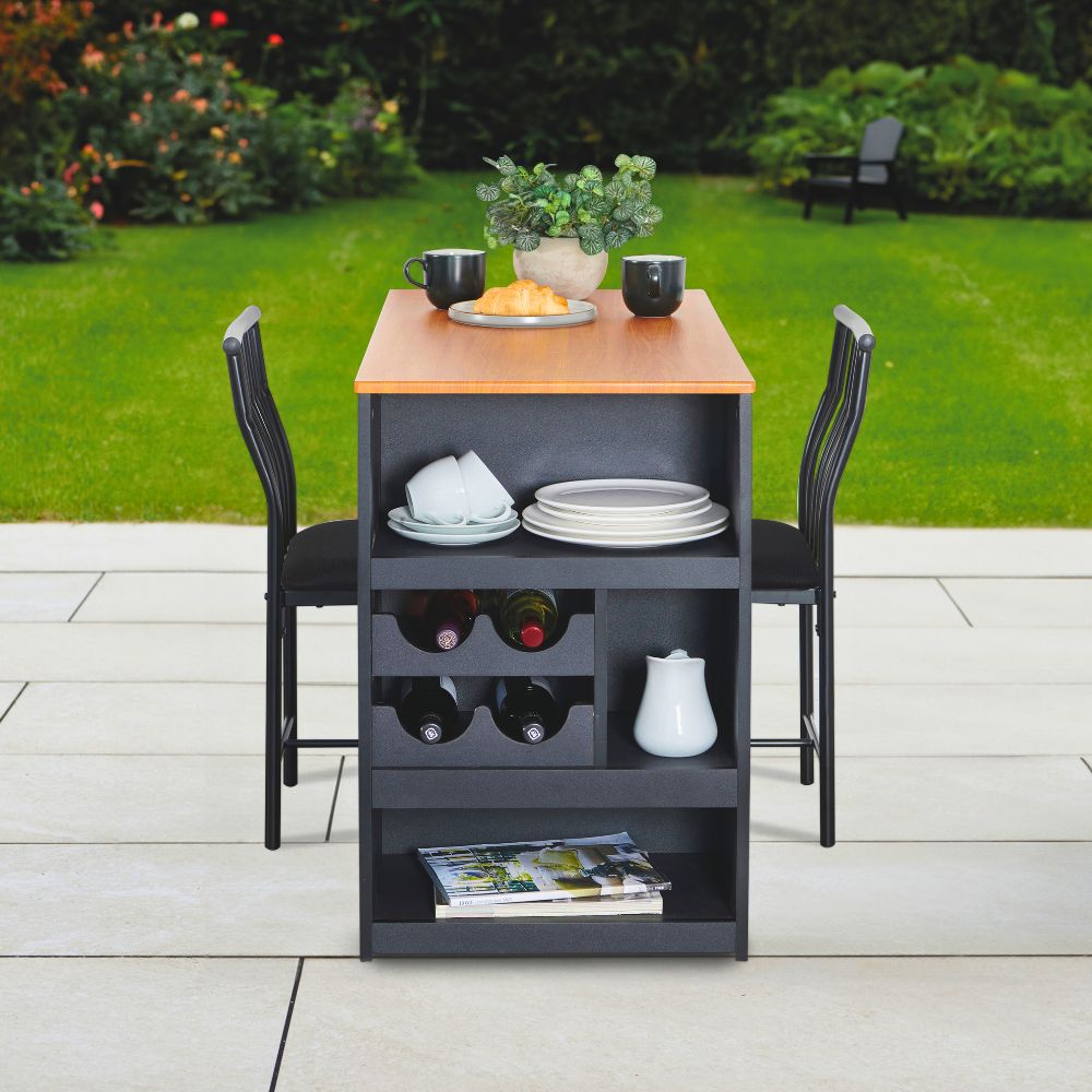 Space-Saving Bistro Dining Set for Two with Built-In Storage & Wine Rack