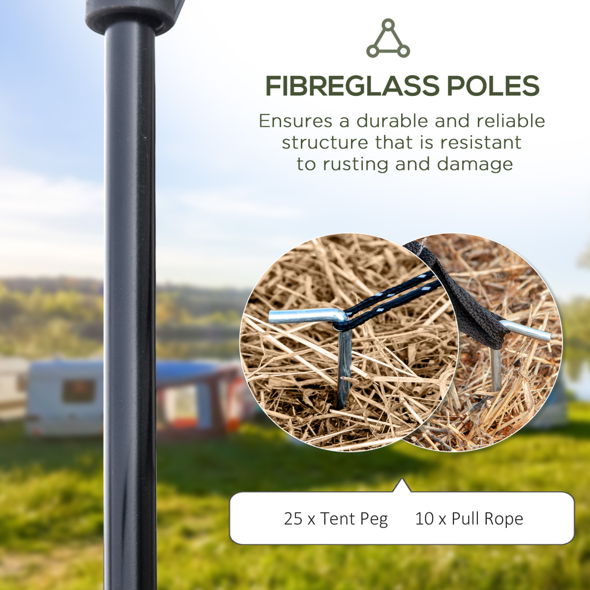Camping restrictions are a thing of the past with the Outsunny 5-6 Man Family Tent! Designed to provide ample sleeping and socializing space for your outdoor adventures, this tent is perfect for families or groups. Constructed with durable fiberglass poles, it maintains its shape, ensuring you stay secure and comfortable. The tent features a 2000mm water-resistant polyester canopy, offering you reliable protection from the elements. Enjoy improved airflow and visibility thanks to strategically placed side and front windows. Need some privacy? The inner room is removable, allowing you to customize your space with ease, whether you prefer a spacious single room or separate areas for relaxation.