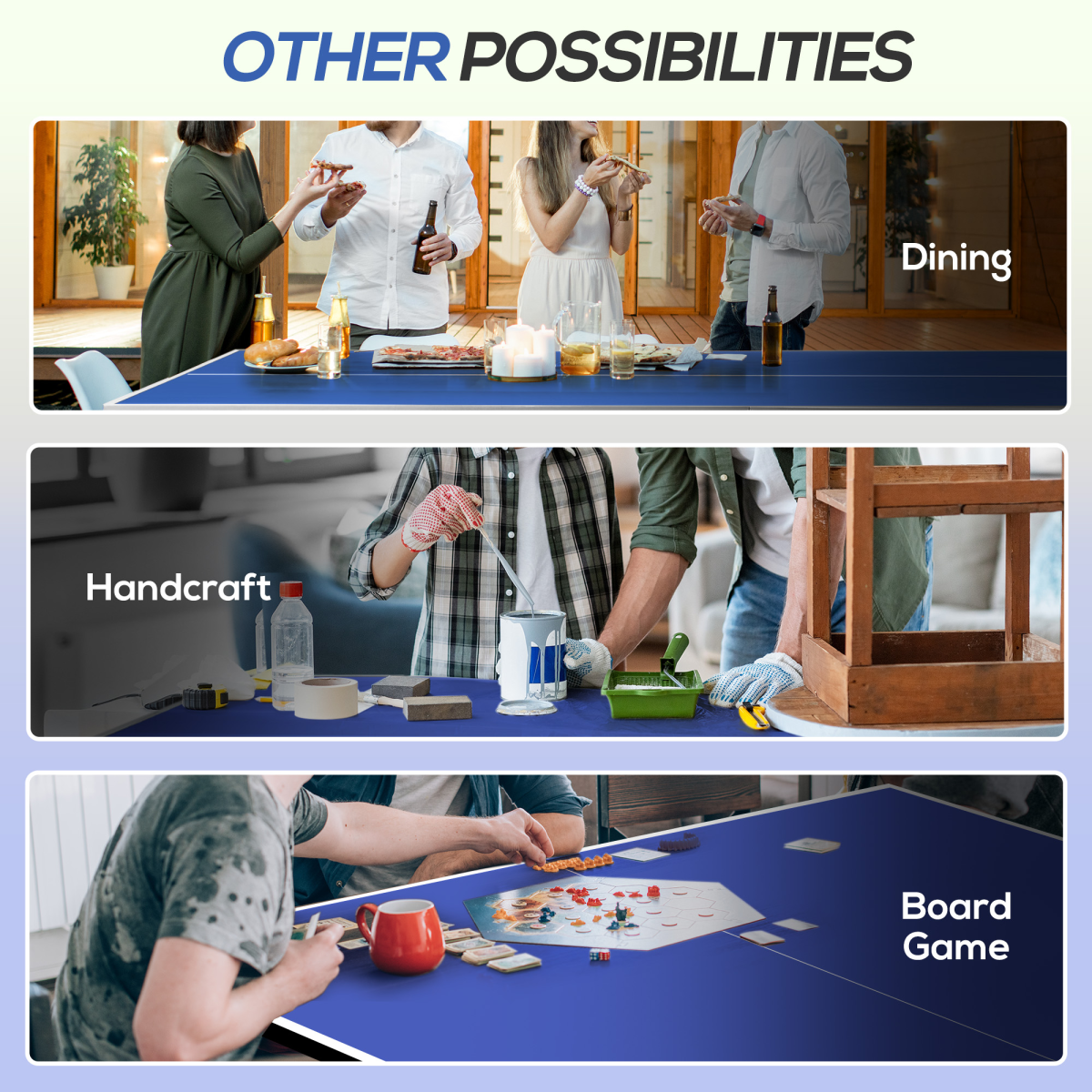 But the versatility doesn’t end there! This remarkable table also serves double duty as a dining or gaming table; simply remove the net when it's not in use. To keep your table in pristine condition, a protective cover is included, ensuring that it remains clean and ready for your next match.