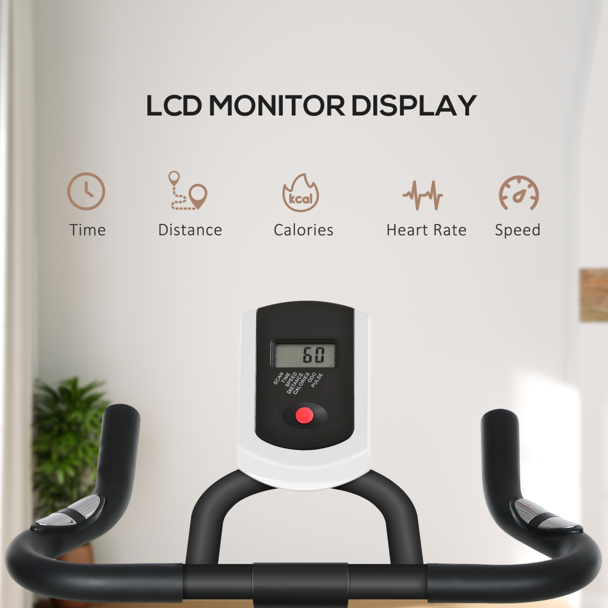 Transform your fitness journey with the SPORTNOW Indoor Exercise Bike, expertly designed for an effective and enjoyable workout experience right at home. This advanced stationary bike offers a full-body workout capability, empowering you to take control of your fitness goals. Its built-in LCD monitor allows you to easily track your time, speed, pulse, and calories burned, helping you stay motivated and informed.