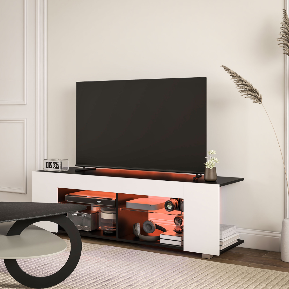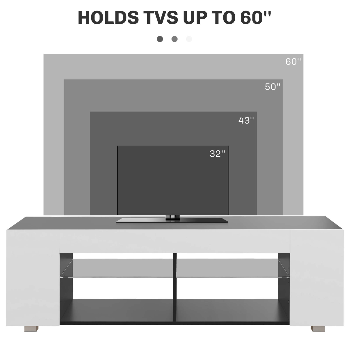 Transform your living space with the stylish and versatile TV Stand. Designed to accommodate TVs up to 60 inches, this media unit combines functionality with contemporary aesthetics. Equipped with vibrant LED light strips featuring 12 stunning color options and four dynamic modes including flash, strobe, fade, and smooth, you can easily create the perfect atmosphere for any occasion.