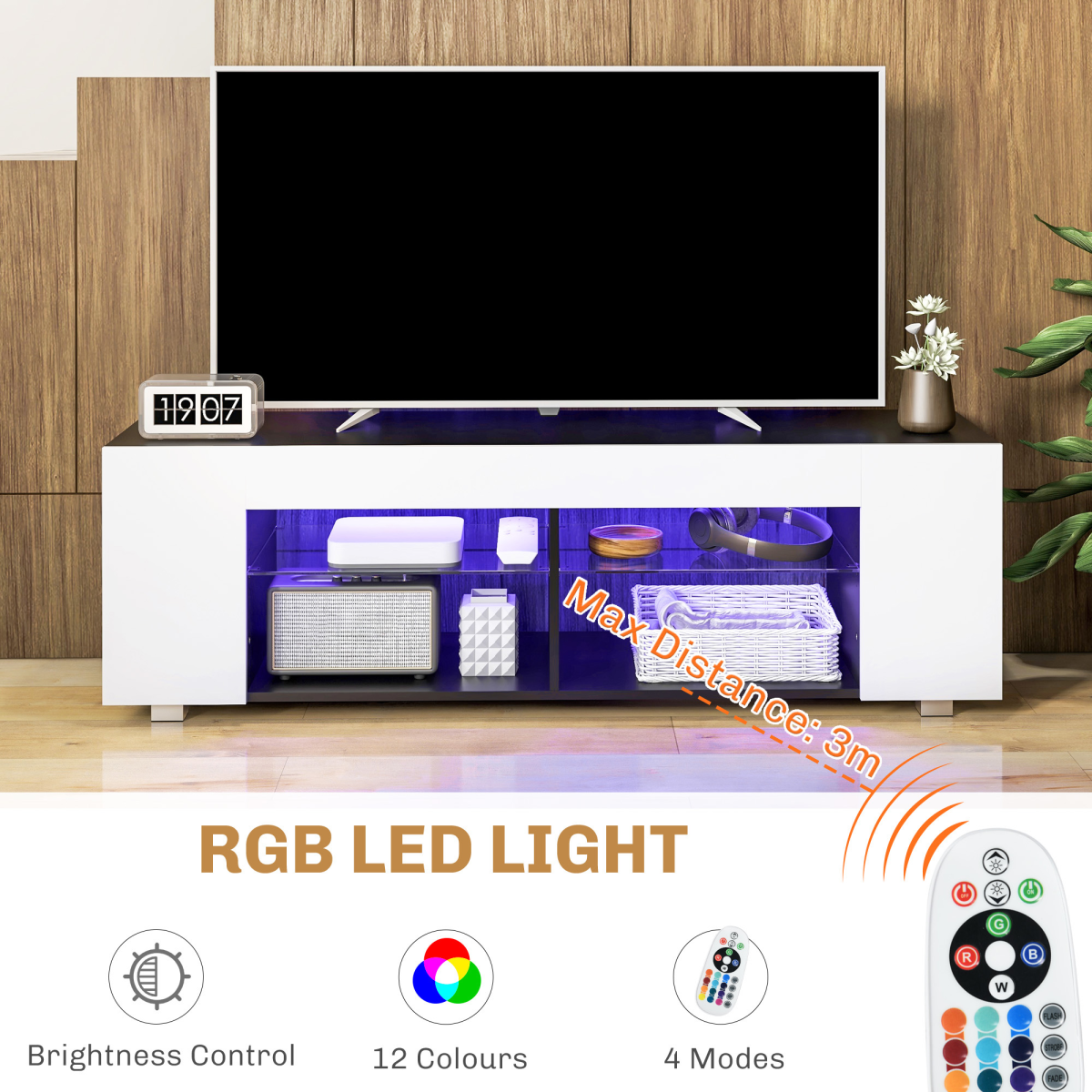 Stylish 145cm TV Stand with RGB LED Lights & Glass Shelves