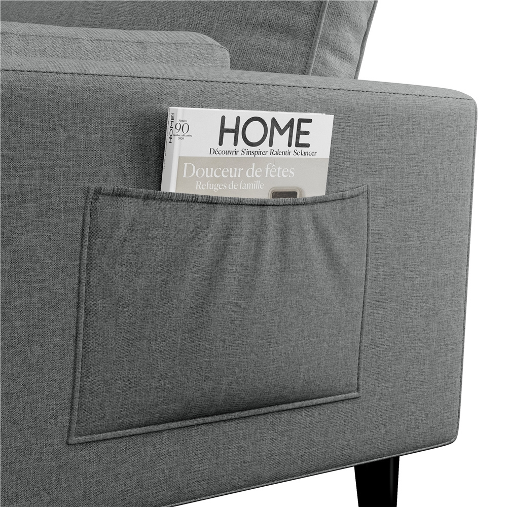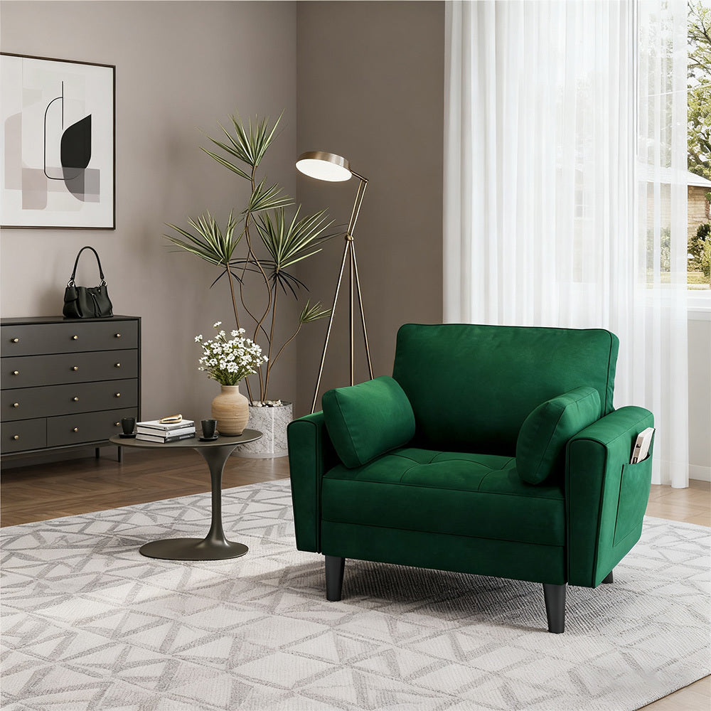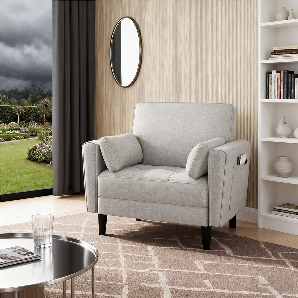 Tufted Sofa Chair, Fabric Accent Chair Upholstered Sofa with 2 Throw Pillows & Side Storage Pockets for Living Room, Bedroom