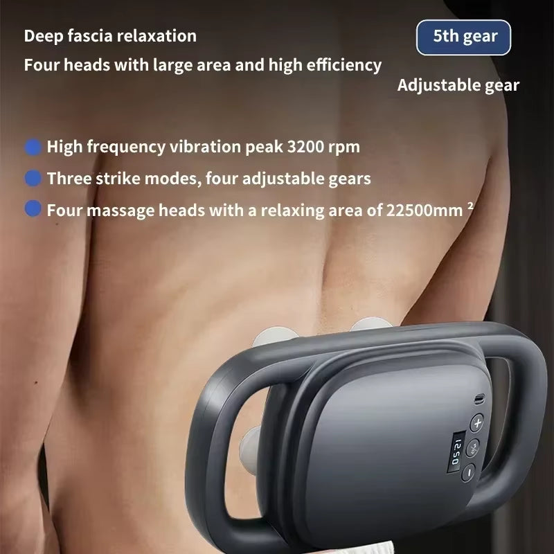 Ultimate 4-Head Wireless Handheld Fascia Massager for Instant Muscle Relief and Dynamic Therapy