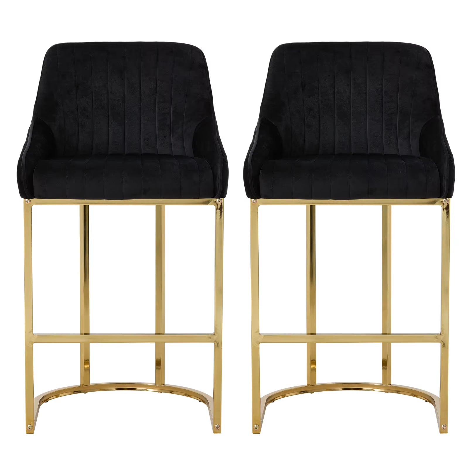 This bar stool perfectly blends modern aesthetics with practical functionality, creating a comfortable leisure experience for you. Crafted with sturdy metal legs featuring clean, streamlined silhouettes, it ensures stability while adding a touch of contemporary elegance to your living space. The seat is padded with high-density sponge that scientifically distributes body pressure to effectively reduce sitting fatigue, and upholstered in luxurious velvet fabric that delivers cloud-like softness for exceptional comfort. Whether paired with a home bar or serving as a statement piece in your living room, this elegantly designed bar stool effortlessly elevates your interior decor with its sophisticated charm.
