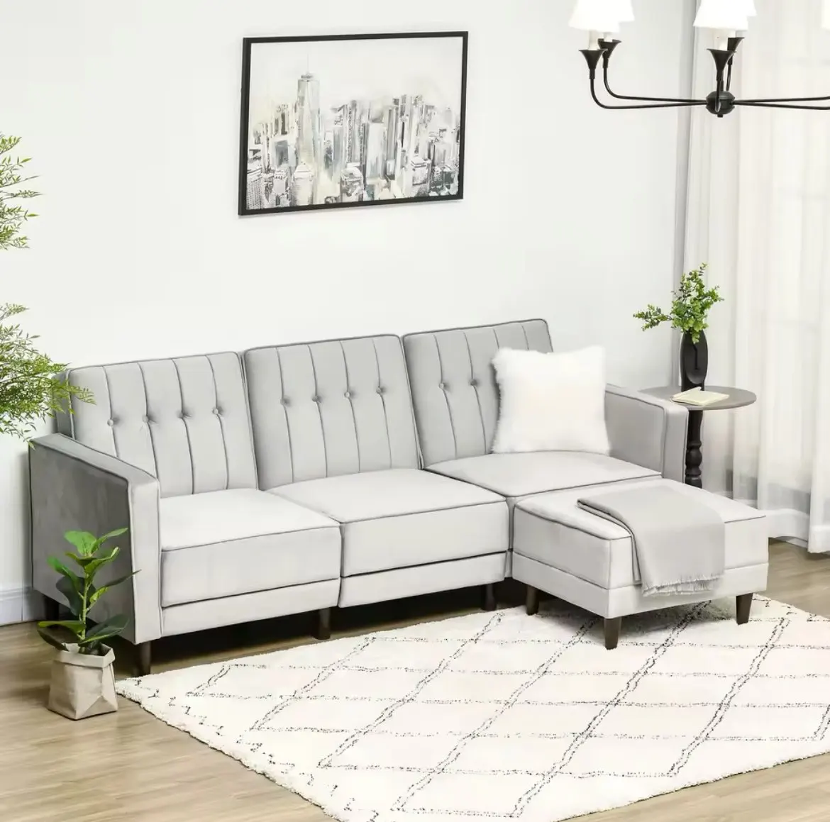Upholstered Sofa Bed Reversible Sectional Sofa Set Velvet-Touch Sleeper
