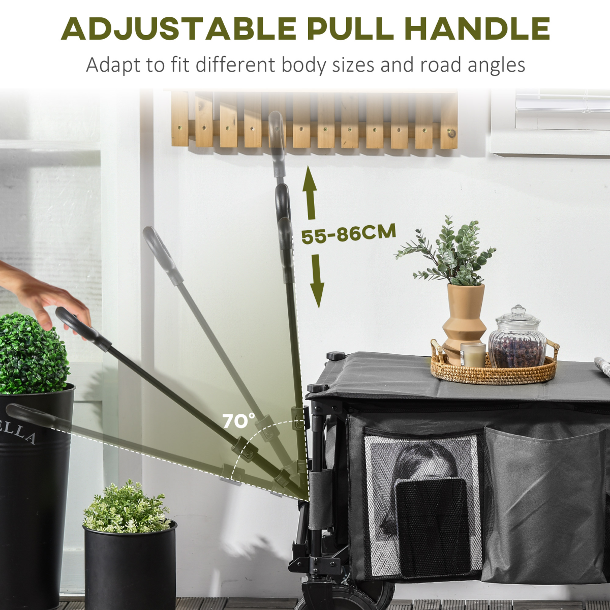 The spacious fabric bag is thoughtfully designed to securely hold all your belongings. Plus, it includes a top cover to keep your items protected from the elements. With its convenient folding design, this trolley is easy to transport and store, making it an indispensable tool for your outdoor adventures.