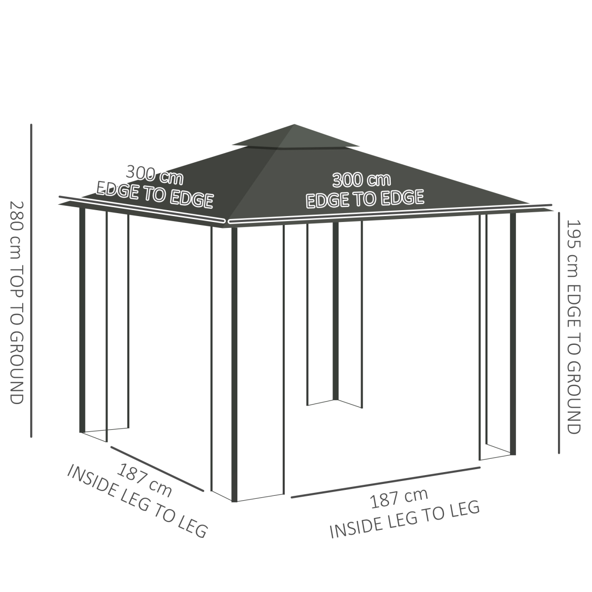 Enhance your outdoor experience with the 3 x 3(m) gazebo, perfect for a variety of activities, from family gatherings to garden parties. Crafted with a durable powder-coated steel frame, this gazebo offers exceptional strength and stability. Enjoy the flexibility of mesh curtains that allow you to create either an intimate, private space or an open, airy environment; the choice is yours!