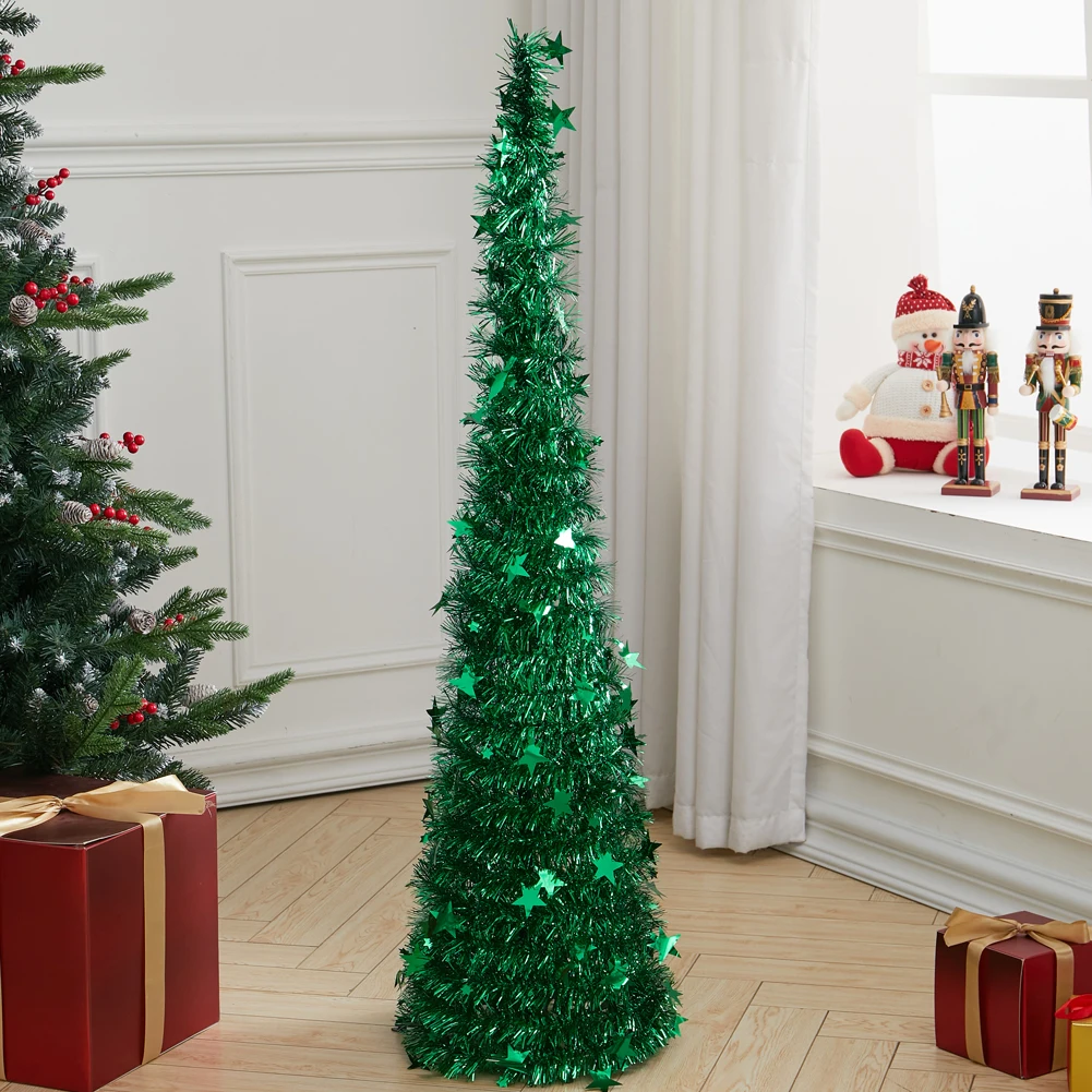 Voltsify Collapsible 1.2M Pop Up Tinsel Christmas Tree with Base
