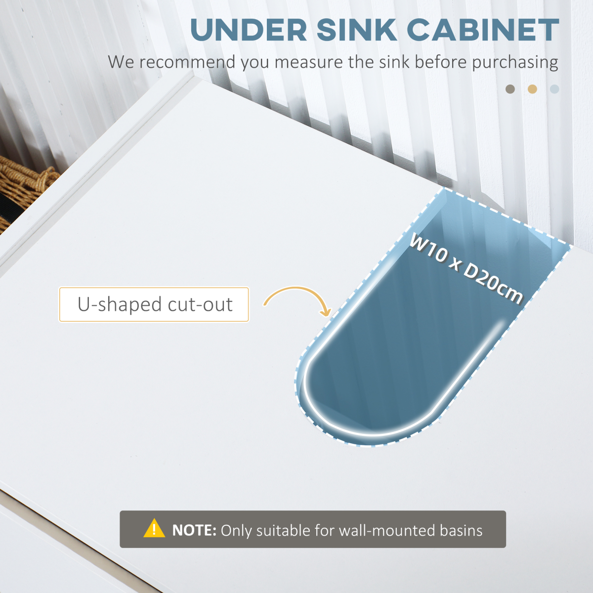 Upgrade your bathroom with a sleek, floor-standing under-sink cabinet. Featuring a pristine white finish and a classic double-door design, this cabinet provides hidden storage for toiletries, cleaning supplies, and towels while keeping plumbing neatly tucked away. Built for durability in humid bathrooms, its sturdy frame offers stable, reliable support and easy maintenance for everyday use.